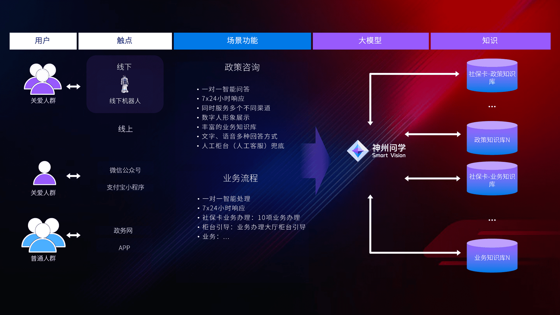 在服务大厅部署客服机器人,,,在线上应用和小程序配置客服数字人,,,724小时为群众解答常规问题,,客服机器人无法处理的,,,转现场人工处理。。