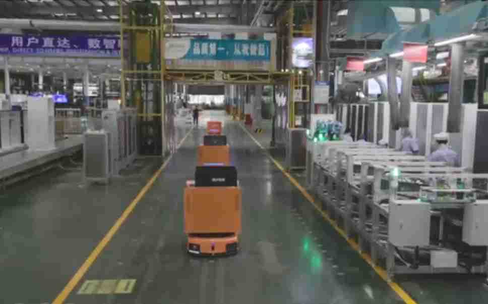 为车载冰箱物流配送打造的智能解决方案,,,,包含产中物流通过潜伏举升AMR搬运至线边,,,,产后成品物流智能仓储,,,,流程包含产中物流智能齐套入库,,线边安灯叫料AMR智能配送至线边,,成品入库、、、出库,,,通过无人堆高车机器人,,,,智能仓储管理替代人工作业管理,,,实现更高存储、、、、更高效率、、、更具柔性化的解决方案。。。。